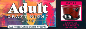 Just in time for Summer! Use your art skill to paint your unique ladybug design on terracotta planter. (Registration Required – Limited Space)